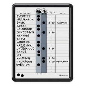 Employee In/Out Board, Porcelain, 11 x 14, Gray, Black Plastic Frame