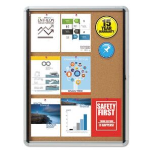 Enclosed Cork Bulletin Board w/Swing Door, 30 x 27, Silver Aluminum Frame