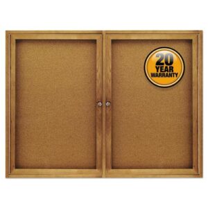 Enclosed Bulletin Board, Natural Cork/Fiberboard, 48 x 36, Oak Frame