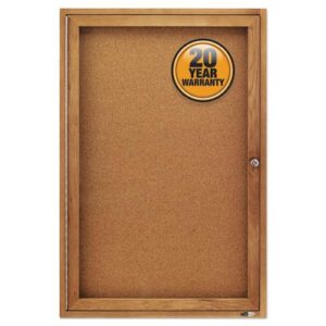 Enclosed Cork Bulletin Board w/Swing Door, 21 x 27, Silver Aluminum Frame