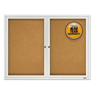 Enclosed Cork Bulletin Board, Cork/Fiberboard, 48″ x 36″, Silver Aluminum Frame
