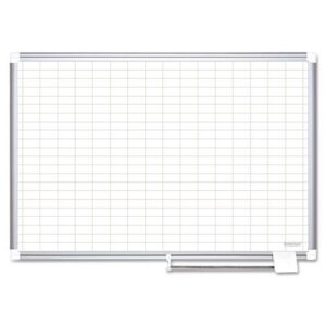Gridded Magnetic Porcelain Planning Board, 1 x 2 Grid, 36 x 24, Aluminum Frame
