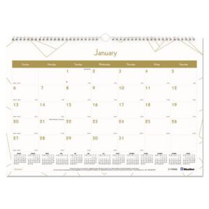 Gold Collection Monthly Wall Calendar, 17 x 12, White and Gold, 2019