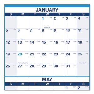 Horizontal Erasable Wall Planner, 36 x 24, Blue/White, 2019
