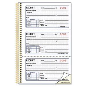 Money/Rent Receipt Spiral Book, 2-3/4 x 4 3/4, 2-Part Carbonless, 200 Sets/Book