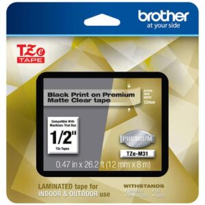 TZe Premium Laminated Tape, 1/2″ x 26 1/5 ft, Black on Clear