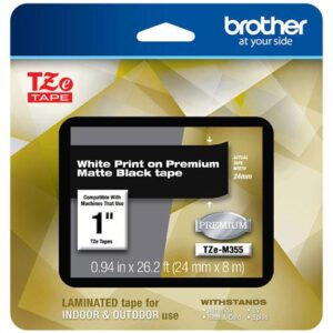 TZe Premium Laminated Tape, 1″ x 26 1/5 ft, White on Black