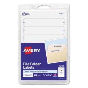 Permanent File Folder Labels, 11/16 x 3 7/16, White, 252/Pack