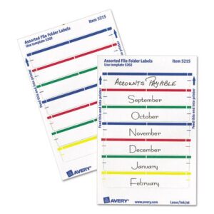Permanent File Folder Labels, 11/16 x 3 7/16, White/Assorted Bars, 252/Pack