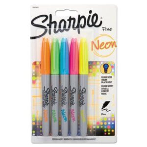 Neon Permanent Markers, Fine Bullet Tip, Assorted Colors, 5/Pack