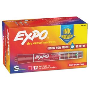 Ink Indicator Dry Erase Marker, Broad Chisel Tip, Red, Dozen