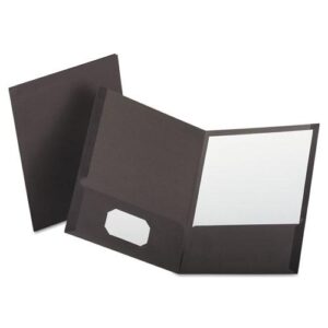 Linen Finish Twin Pocket Folders, Letter, Black,25/Box