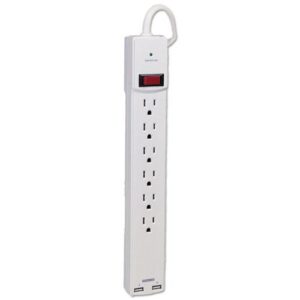 Surge Protector, 6 Outlets/2 USB Charging Ports, 6 ft Cord, 1080 Joules, White