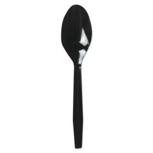Mediumweight Polystyrene Cutlery, Teaspoon, Black, 1000/Carton