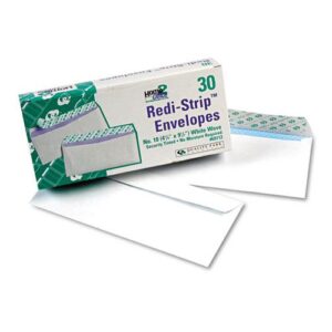 Redi Strip Security Tinted Envelope, #10, 4 1/8 x 9 1/2, White, 30/Box