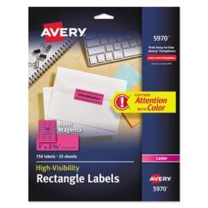 High-Visibility Permanent ID Labels, Laser, 1 x 2 5/8, Neon Magenta, 750/Pack