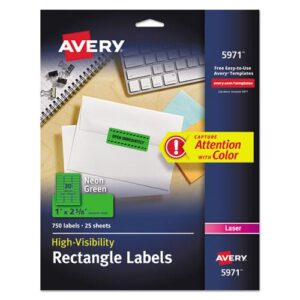 High-Visibility Permanent ID Labels, Laser, 1 x 2 5/8, Neon Green, 750/Pack