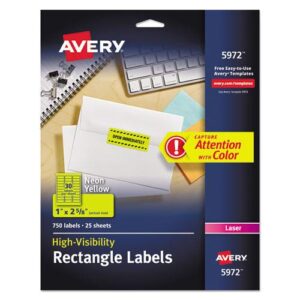 High-Visibility Permanent ID Labels, Laser, 1 x 2 5/8, Neon Yellow, 750/Pack