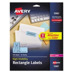 High-Visibility Permanent ID Labels, Laser, 1 x 2 5/8, Pastel Blue, 750/Pack