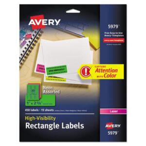 High-Visibility Permanent ID Labels, Laser, 1 x 2 5/8, Asst. Neon, 450/Pack