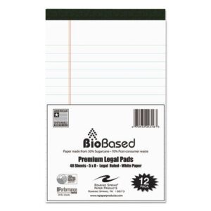 USDA Bio-Preferred Legal Pad, Legal Rule, 5 x 8, White, 40 Sheets, 12/PK