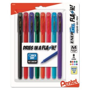 EnerGel Flash Stick Gel Pen, Medium 0.7mm, Assorted Ink/Barrel, 8/Pack