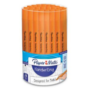 Handwriting Triangular Plastic Point Pen, 0.7mm, Black Ink, Orange Barrel, 24/Pack