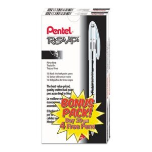R.S.V.P. Stick Ballpoint Pen Value Pack, 1mm, Black Ink, Clear/Black Barrel, 24/Pack