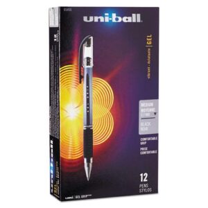 Signo GRIP Stick Gel Pen, 0.7mm, Black Ink, Silver/Black Barrel, Dozen