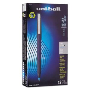 Stick Roller Ball Pen, Fine 0.7mm, Blue Ink, Black Matte Barrel, Dozen