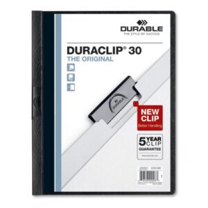 Vinyl DuraClip Report Cover w/Clip, Letter, Holds 30 Pages, Clear/Black, 25/Box