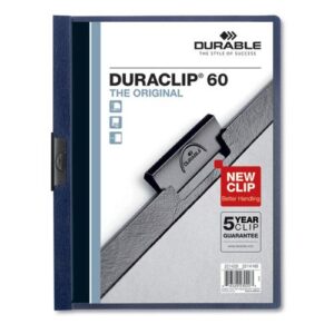 Vinyl DuraClip Report Cover, Letter, Holds 30 Pages, Clear/Dark Blue, 25/Box