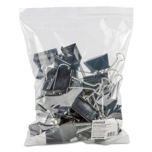 Binder Clips in Zip-Seal Bag, Large, Black/Silver, 36/Pack