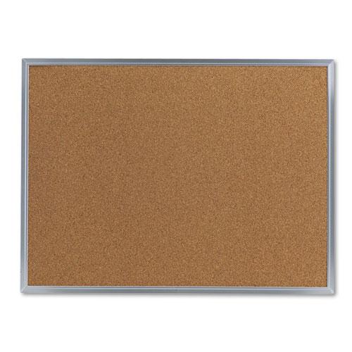 Bulletin Board, Natural Cork, 24 x 18, Satin-Finished Aluminum Frame