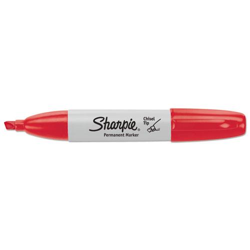 Chisel Tip Permanent Marker, Medium, Red, Dozen