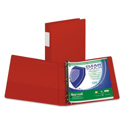Clean Touch Locking Round Ring Reference Binder, Antimicrobial, 1″ Cap, Red