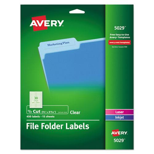 Clear Permanent File Folder Labels w/Sure Feed, 1/3 Cut, 2/3 x 3 7/16, 450/Pack