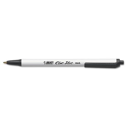 Clic Stic Retractable Ballpoint Pen, 1mm, Black Ink, White Barrel, 24/Pack