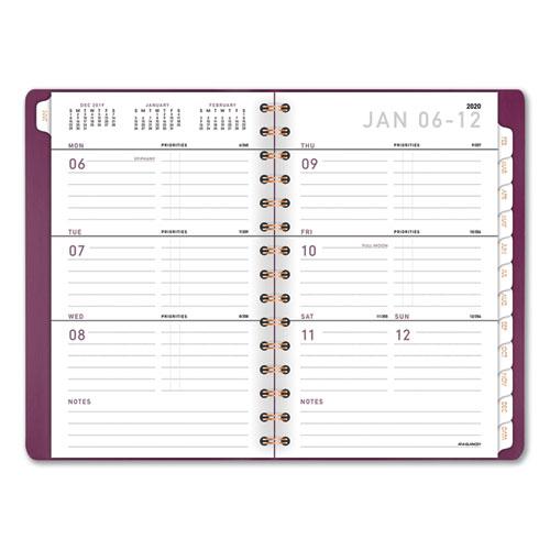 - One week per two-page spread has ruled planning space for notes and priorities Monday-Friday. Weekends are condensed.