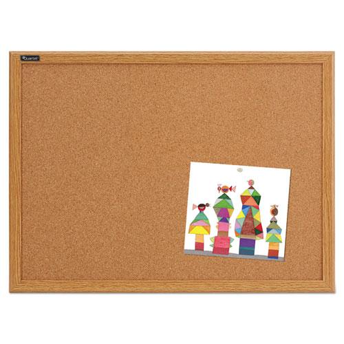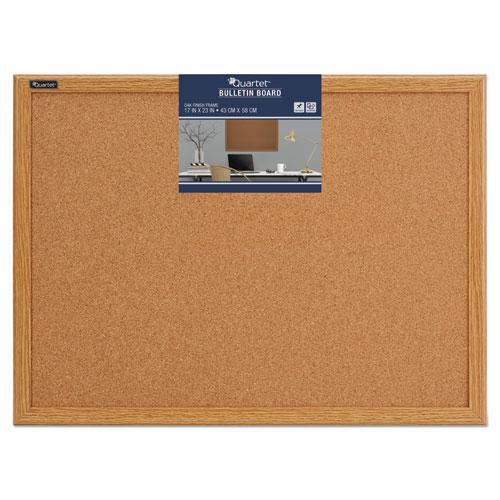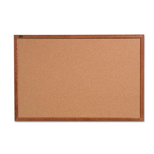 - Natural cork bulletin board displays important papers.