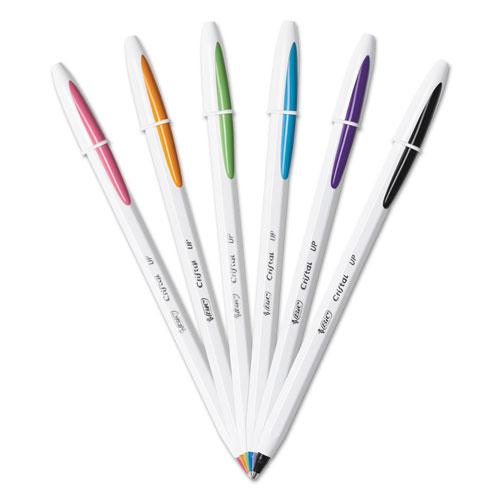 Cristal Up Stick Ballpoint Pen, Medium 1.2mm, Assorted Ink, White Barrel, 6/Pack