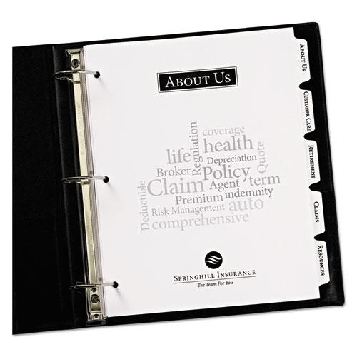 • Print directly on tabs and add a logo, text and graphics on divider sheet for high impact.