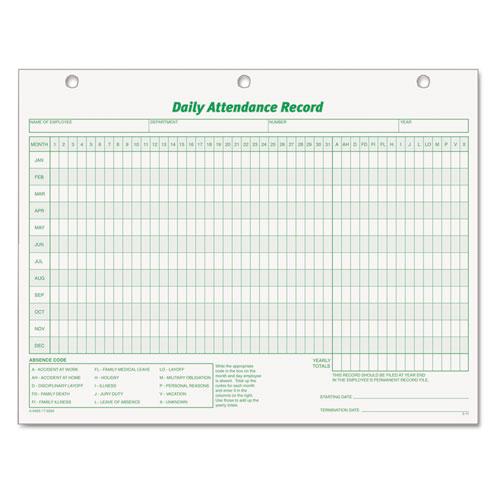 Daily Attendance Card, 8 1/2 x 11, 50 Forms