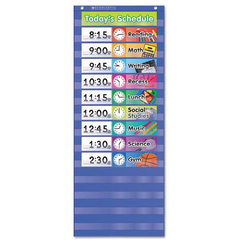 Daily Schedule Pocket Chart, 13 x 33, Blue/Clear