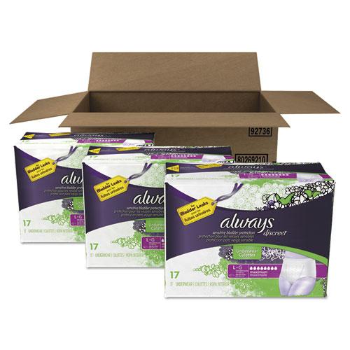 Discreet Incontinence Underwear, Large, Maximum Absorbency, 17/Pack, 3 Pk/Ctn