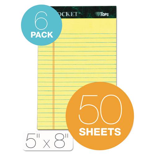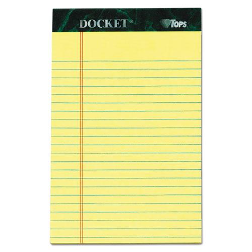 Docket Ruled Perforated Pads, Narrow Rule, 5 x 8, Canary, 50 Sheets, 6/Pack