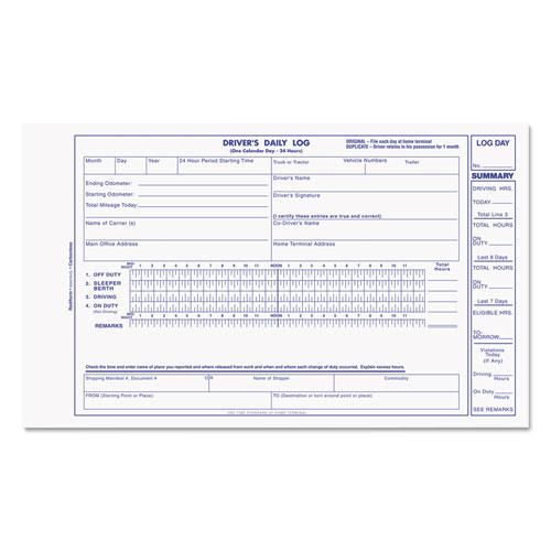 Driver’s Daily Log, 8 3/4 x 5 3/8, Carbonless Duplicate, 31 Sets/Book