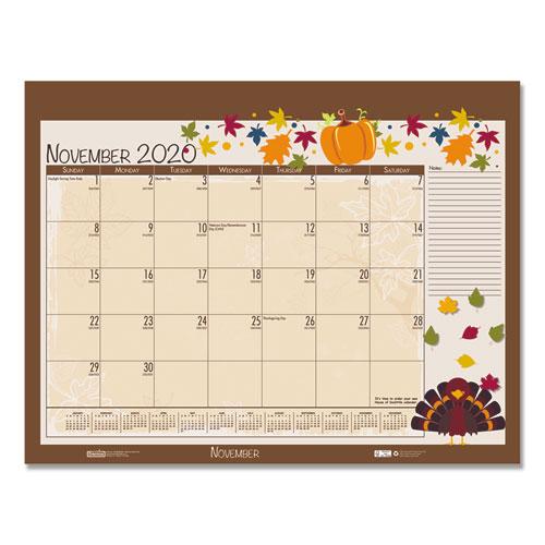 - Each month features a different lively design depicting the holidays and seasons of that month.