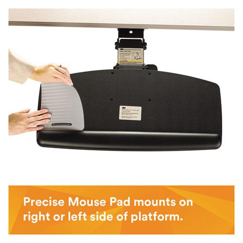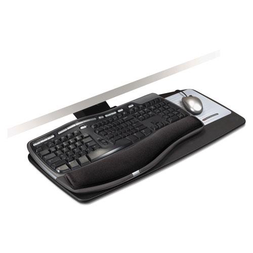 - All-in-one keyboard platform with 7 1/2″ height range, 360° swivel and +10°/-15° tilt.