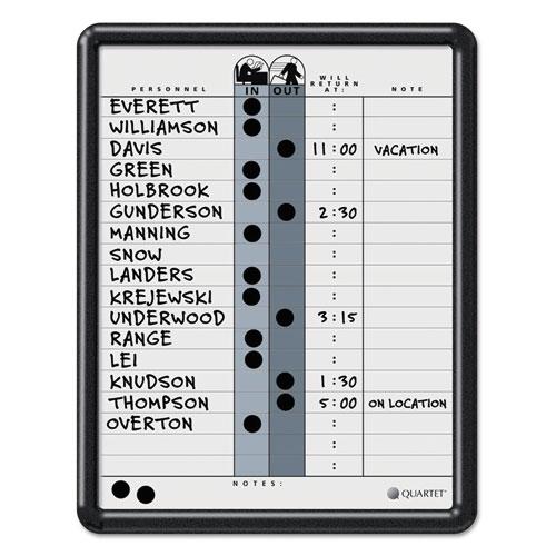- Stylish personnel board tracks in/out status and notes for up to 18 employees.